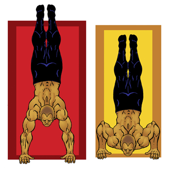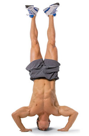 This past Friday in Stunts and Tumbling, we gained our first introduction to a balance series that eventually leads up to the hand stand. During class, we were presented with the Tip-Up, Tripod, and Headstand. Due to balance and spotting issues, a mat was placed against the gymnasium wall so students could practice their headstands with a bit of extra support. Together overzealous, my partner and I decided to try to move from headstands into handstands. A regular at CrossFit Long Island, Tom has been working on his hand stand push-up, so he gave me some pointers on the exercise. The whole hand-balancing thing gave me more problems than the strength component, and I could bang out a few reps at a time while my feet were gliding along the wall. In fact, to mess around with the handstand pushup a little more, I subbed that in for a military press; soreness has ensued.