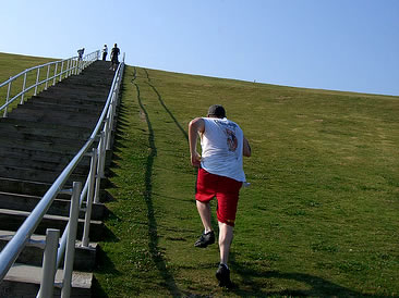 Now that I’ve scared you from eating sugar or sitting on your butt, you might be wondering about how to burn a few calories and get moving. That’s perfect, because Gretchen Reynolds penned a piece that asks, “What’s the Single Best Exercise?” It’s a great question, because we’re all trying to get the most bang for our buck, right? Well, scientifically speaking, simply walking provides a great deal of benefits. In fact, “sedentary person’s risk of dying prematurely from any cause plummeted by nearly 20 percent if he or she began brisk walking (or the equivalent) for 30 minutes five times a week.” That’s pretty damn good for such an easy level of activity, right? If you think that endless cardio is the answer to life, wait for a second. “If he or she tripled that amount, for instance, to 90 minutes of exercise four or five times a week, his or her risk of premature death dropped by only another 4 percent.” The author noted that if you’re already active, brisk walking is probably the last thing you’d think about as great exercise. Fortunately, Stuart Phillips, Ph.D., prefers the squat, because it “activates the body’s biggest muscles, those in the buttocks, back and legs.” Simple body weight squats are potent, and once body weight isn’t enough, you can use external loads. Squats, and weight training in general, have numerous benefits, including weight management, lowered risk of developing diabetes and cardiovascular disease, and increased cardiovascular fitness. (You already knew that from reading my blog, right?) A great take-away quote from Phillips is, ““I used to run marathons,”… Now he mostly weight-trains, “and I’m in better shape.” People will always want to find the perfect blend of exercise, right? To combine the aerobic benefits of walking and the power development of the squat, try running stairs. This recommendation comes from Martin Gibala, the the chairman of the department of kinesiology at McMaster University in Hamilton, Ontario. While Gibala’s recommendation is designed to make the most out of exercise, I’d personally weight that balance in favor of the power output.