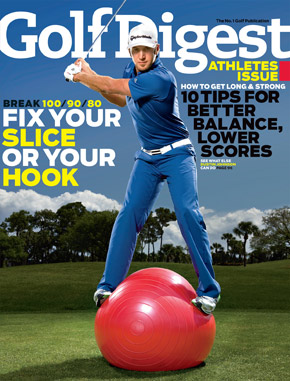 The above picture is the cover of September’s issue of Golf Digest, featuring PGA pro Dustin Johnson. Since Tiger Woods became popular in the mid 90’s, professional golfers are becoming increasingly more athletic, and it’s almost unheard of to hear of tour players who don’t train these days. Before you lambast the cover, let me tell you that I already did. When I first saw it, I mentioned to my brother and girlfriend that “This is the kind of media crap we have to deal with, people think this stuff actually works…Gray Cook would not be pleased.” My brother has no idea who Gray is, but Maria chuckled about the comment. The next morning when I started reading the piece, lo and behold, Gray’s quoted in the first paragraph, explaining the physical demands of golf. In fact, he created a golf specific screen for the article that’s essentially a mash-up of the Functional Movement Screen and the screen used by the Titleist Performance Institute. Unfortunately, I can’t link to the article online, but if you’re interested, definitely check out THIS website, which is a link to the fitness page of the Titleist Performance Institute. It contains great information for preparing the body to move and perform. It’s applicable to nearly any sport or activity, and includes material specific to the golfer as well.