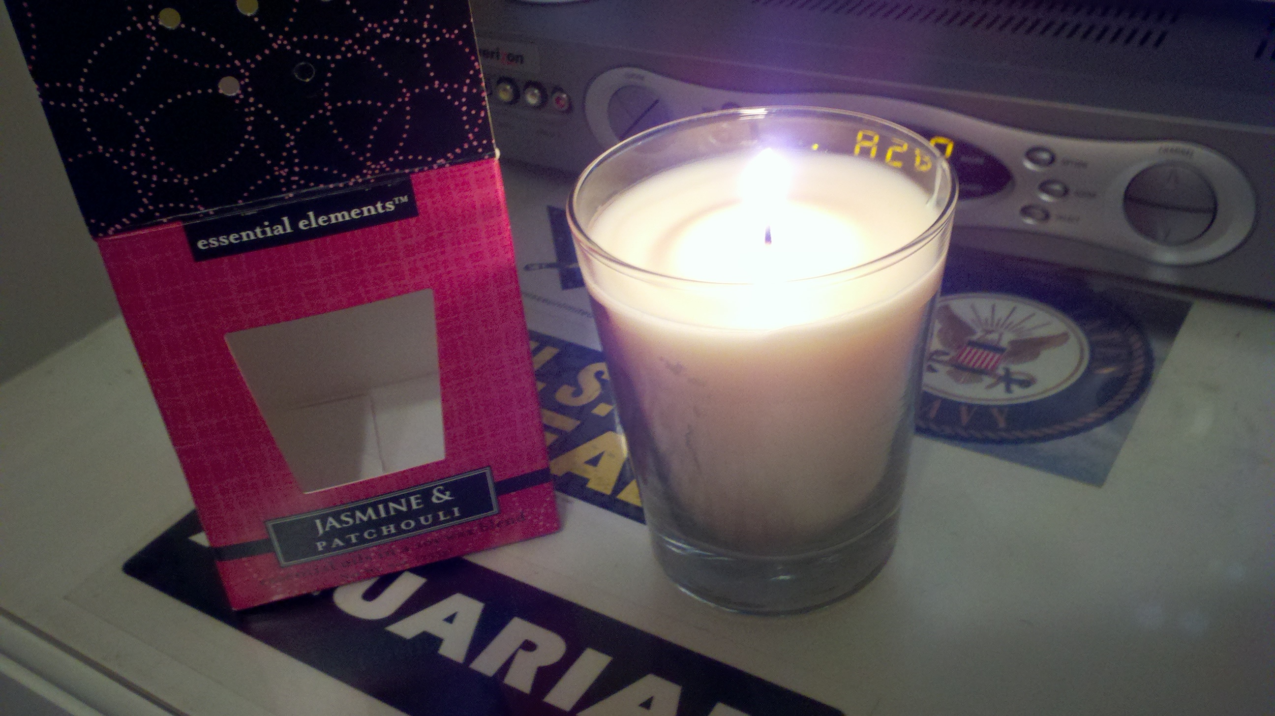 A certain combination of reading GQ over the weekend and their proximity to the fish oil led me to checking out some candles at the store, and I decided a nice jasmine and patchouli candle smelled good enough that I could ignore why I was looking at candles. Now that it’s lit and sitting on my desk next to me as I write this, it was definitely a good idea, because it smells great. I wasn’t quite sure what pactchouli was, but Wikipedia quickly informed me that is a bushy herb of the mint family which is native to tropical regions of Asia. The oils are used in aromatherapy and the scent induces relaxation, but I can’t swear to that; I just got really excited to see the Saints score their first touchdown against the Giants. (Why do I like the Saints? Beacuse Drew Brees trains with Todd Durkin and uses the TRX.)