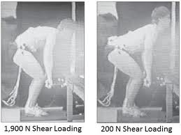 As an example, compare the two pictures below and the resulting sheer force on the spine. The picture on the left is of a flexed lumbar spine, demonstrating 9.5x more sheer force than on the neutral spine. If your spine is flexed under load, then as the brothers say, ” Over time, I guarantee you, you will end up snapping some shit up.”