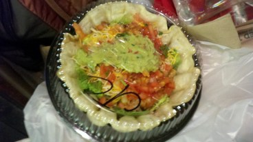 My mom hooked me up with a Moe’s gift card for my birthday, and I swung by on Wednesday night before heading out to teach a drum lesson. I knew a Homewrecker burrito would be too much for a non-training day, and I was a little lost. I’m not sure were the final decision came from, but I decided that to get a salad bowl with lettuce, pinto beans, salsa, chicken, cheese, and lots of guacamole. 15 minutes later:
