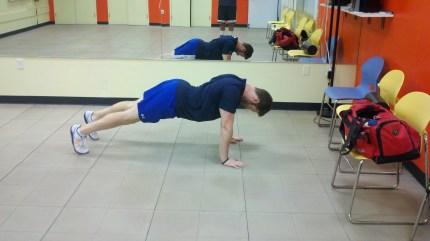 The resemblence is uncanny! Most sets of higher rep push-ups are performed so that on video, you’d assume it was a dance move from Magic Mike. Rather than dropping and bangin’ out 50, slow things down and focus on proper alignment. At the top of the movement, you should look like this: