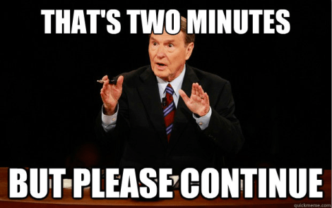 I’ll leave the political commentary to those who get paid to confuse facts and opinions, but I was excited to see lots of political chatter on the FaceBooks last night. Regardless of your belief system, which candidate you like more, or which candidate sucks less, do your grandparents and future grandchildren a favor and vote come November. We tend to forget that President Obama and Mitt Romney are two regular dudes, and they make the same mistake as the rest of us. Last night it was glaringly obvious that both men suck at timing their intervals: