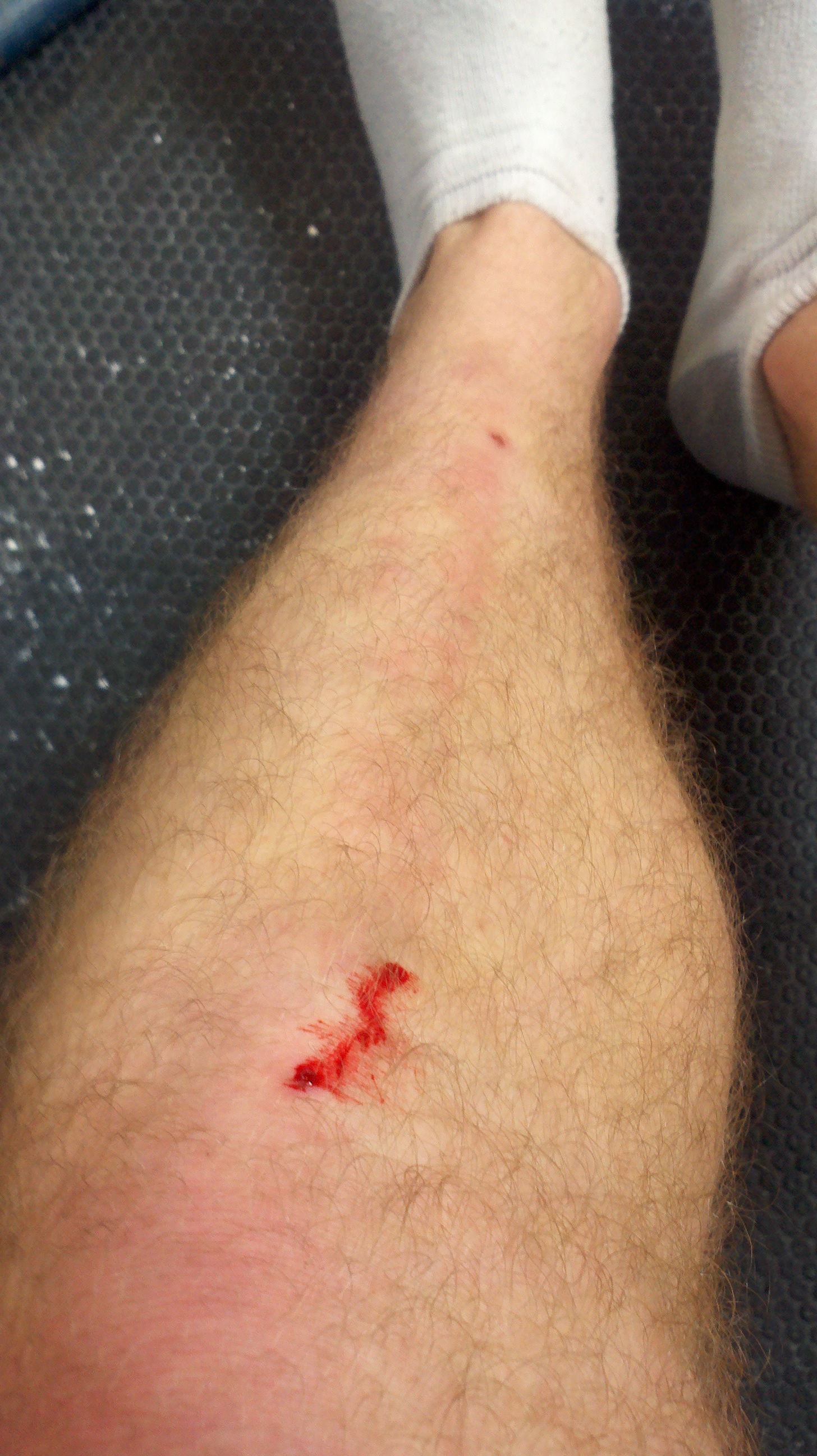 I’ve found a new spark in my relationship with my beloved deadlift, and I’ve been hammering the life out of technique and speed off the floor. As I focus on maintaining a vertical shin and the the bar close to my body, it turns out I’m really just shaving my legs with a very heavy razor. Here’s a picture of my leg after a recent workout: