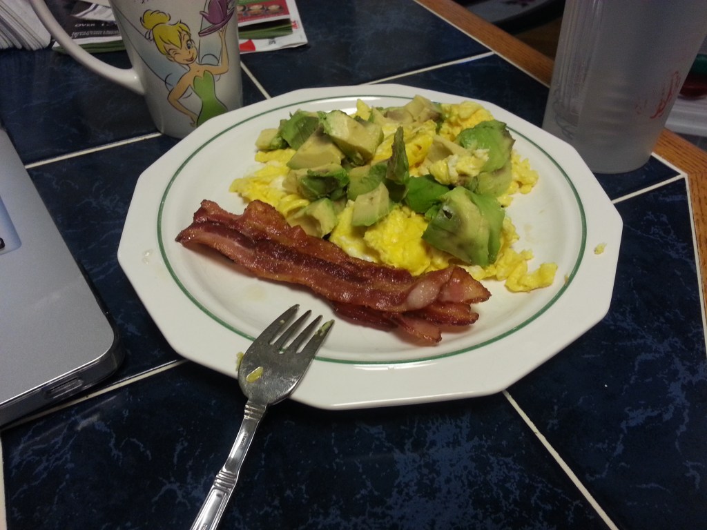 I love eggs. Seriously, they’re the greatest food in the world. I could eat eggs for every meal of every day, and my mind would be happy. At some point, my body would rebel, so instead I try to eat eggs for breakfast every day. That’s usually between 12pm-2pm, and it’s between 4-6 eggs, always cooked in Kerrygold butter, sometimes with cinnamon or chilli powder added. Usually I add a whole avocado. Sometimes there’s a side of Applegate Farms Organic Bacon. (That eliminates the awkward, “How do you like your eggs?” moment.)
