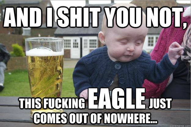 Benjamin Franklin wanted the national bird to be the Wild Turkey. Benny F was a great inventor, but I’m glad that this idea fell through. Can you imagine a turkey as the national bird? They can’t even fly! Eagles can do cool shit like this: