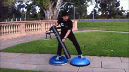 Shoveling requires coordination. You’re seldom balanced, often with an offset stance, always with an asymmetrical load, and you’re lifting and shifting variable loads. Sometimes, you’re standing on ice. The closest “exercise” activity to that would be this: