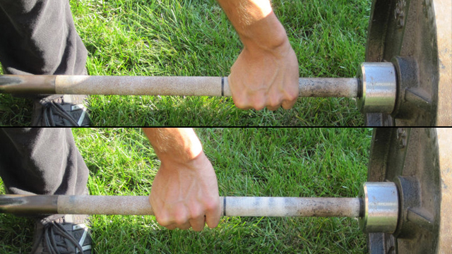 We’ll naturally pull with hands at shoulder width, which is typically called a clean grip. That’s the bottom photo. The wider hand position of the snatch grip can reduce the range of motion necessary for Olympic lifters to complete the snatch, but we’re using it for the opposite reason. We want to increase the range of motion. This means more range of motion for your hips and hamstrings, and it happens to tax your upper back more than a traditional deadlift as well.