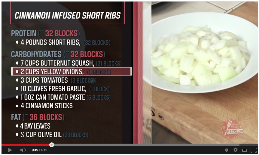 The video was posted on the CrossFit YouTube channel and features Nick Massie from PaleoNick.com, and was balanced according to the principles of the Zone Diet. Ironically, these are three things that make me raise a skeptical eyebrow in regards to the zealotry found in those cultures, but alas I’m a zealot for good food. Furthermore, I’d be curious to find anyone that has a legitimate issue with steak, butternut squash, onions, tomatoes, or garlic.