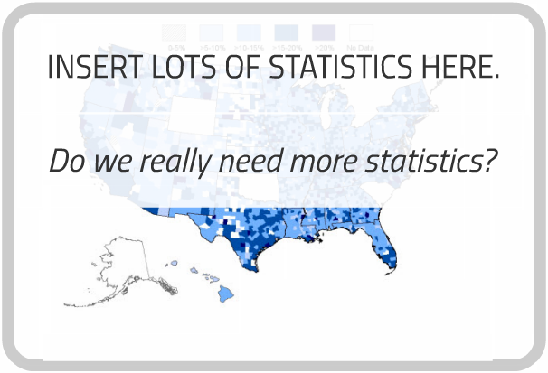 In an age where we begin drowning in data before we’re in school, we don’t respond very well to statistics. Knowing that a certain percentage of people are overweight, or malnourished, or sedentary does little to change our behavior. When this information is available but the numbers don’t change, it’s often interpreted by scientists and policy makers as a sign that we need more information. Information is knowledge, and knowledge gets things done, right?