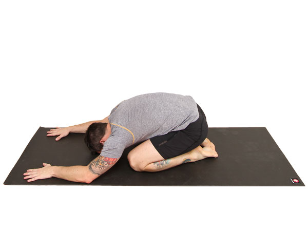 Instead of the Cobra pose, we can try it’s yoga counterpart, Child’s Pose, coupled with emphasis on a full exhalation. I don’t mean a partial breath out, or what you’re accustomed to. I mean full exhalation.
