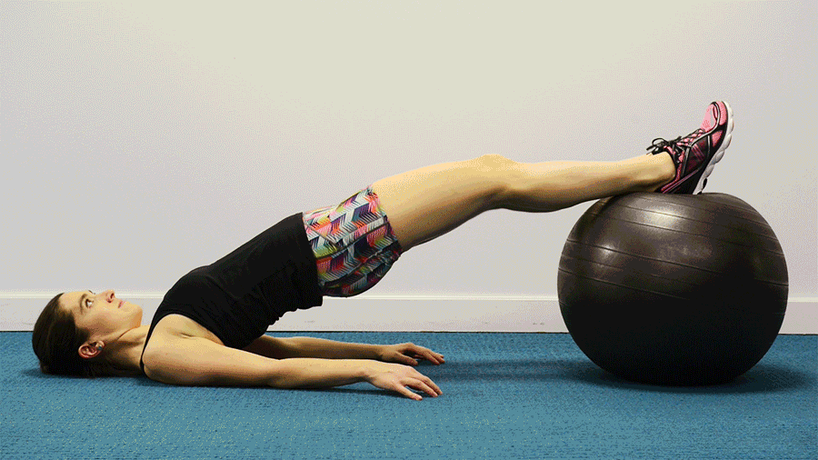 Before you start moving, recreate the same lift that you practiced with your feet on the wall. You want to pull those hamstrings down, and shift your tailbone up a wee bit. That’s home base. As you move through the leg curl again, focus on holding that position at all costs. You’ll notice that both your hamstrings and abs are working harder than they were. Everyone wins!