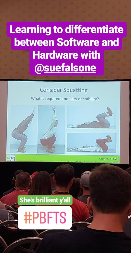 Sue Falsone talked about Dynamic Systems Theory, which for the sake of this conclusion I’ll summarize as, “More options are better than fewer options.” This means that if we have the ability to move in more diverse ways, to train more diverse ways, and to experience the world in more diverse ways, that we’ll fundamentally open ourselves up to have better experiences as movers and as coaches.