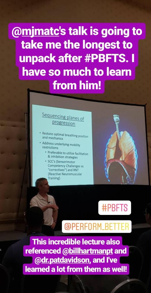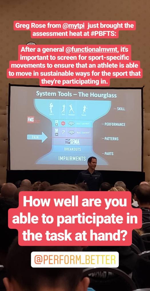 Greg’s lecture included a ton of biomechanics video review, and he was able to present swing faults for golf, tennis, and baseball that really opened my eyes to the importance of movement assessment between the Functional Movement Screen and sports performance.